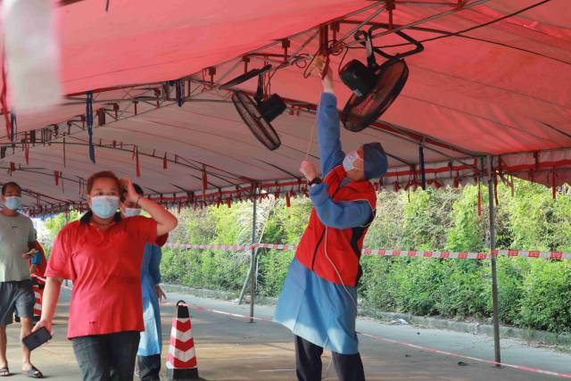 采取增設(shè)風(fēng)扇等措施為工作人員和群眾提供更加舒適的核酸檢測環(huán)境