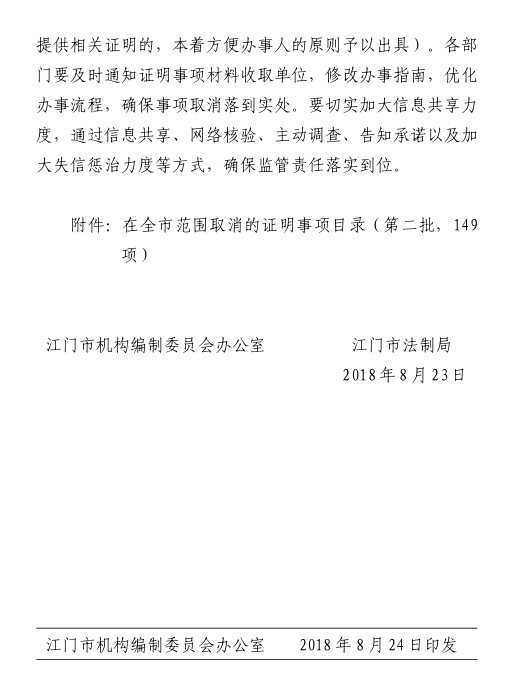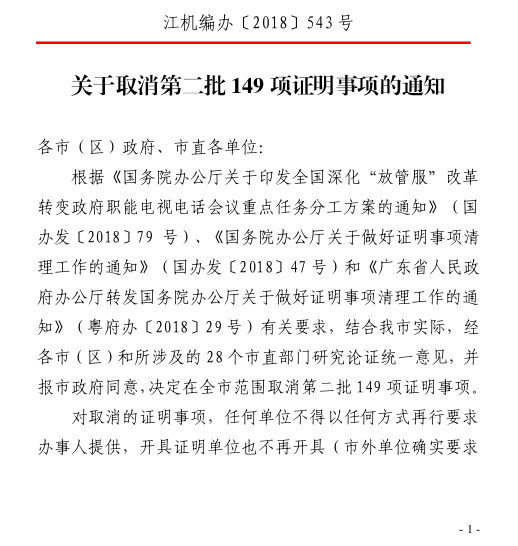 關(guān)于貫徹落實(shí)取消證明事項(xiàng)工作的通知
