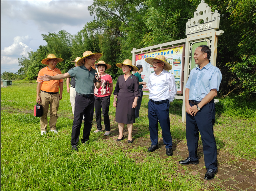 在人大主題公園,蜆岡鎮(zhèn)人大主席黃勇志向調(diào)研組詳細(xì)介紹了公園的建設(shè)情況。該公園依托13株百年以上的三級(jí)保護(hù)古樹,匠心獨(dú)運(yùn)地打造了“兩廊兩亭兩點(diǎn)”景觀布局,并巧妙植入人大元素,將“人民選我當(dāng)代表,我當(dāng)代表為人民”這一核心理念貫穿始終,打造開平市首個(gè)人大主題公園,也是江門市人大第一批全過程人民民主實(shí)踐基地。它不僅是當(dāng)?shù)鼐用裥蓍e娛樂的好去處,更是聽民聲、匯民意、聚民智的重要平臺(tái),也是展示全過程人民民主最基層實(shí)踐的鮮活載體和響亮品牌。凌傳茂對(duì)人大主題公園的建設(shè)成果和創(chuàng)新舉措給予充分肯定,強(qiáng)調(diào)要持續(xù)發(fā)揮公園的平臺(tái)作用,密切人大代表與群眾的聯(lián)系,深入了解民眾需求,及時(shí)傳遞民眾聲音,切實(shí)解決民眾憂慮,不斷豐富具有僑鎮(zhèn)特色的全過程人民民主實(shí)踐內(nèi)涵,為推動(dòng)“百縣千鎮(zhèn)萬村高質(zhì)量發(fā)展工程”(以下簡(jiǎn)稱“百千萬工程”)貢獻(xiàn)人大力量。