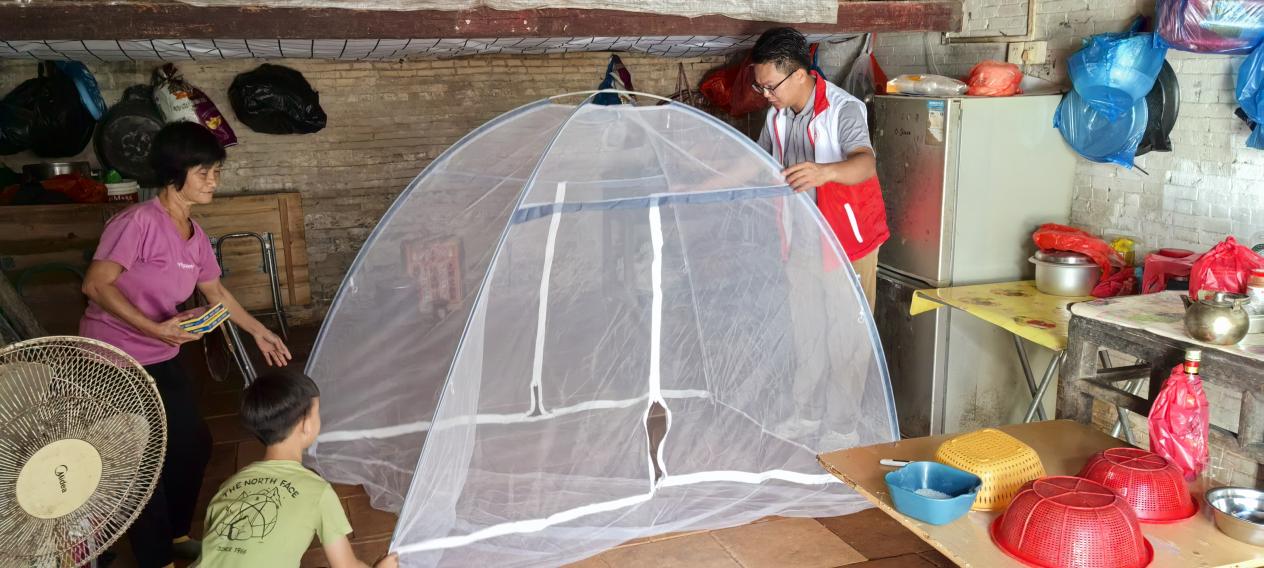 村中特困戶、孤寡老人等防護(hù)薄弱群體,更是選調(diào)生們牽掛的對(duì)象。他們帶著物資主動(dòng)上門(mén),俯身動(dòng)手安裝蚊帳,清倒積水,耐心講解防蚊要點(diǎn)。看著新安裝好的蚊帳,一位阿婆連聲感嘆:“這些后生仔女真系有心,講得明白,做得實(shí)在!”