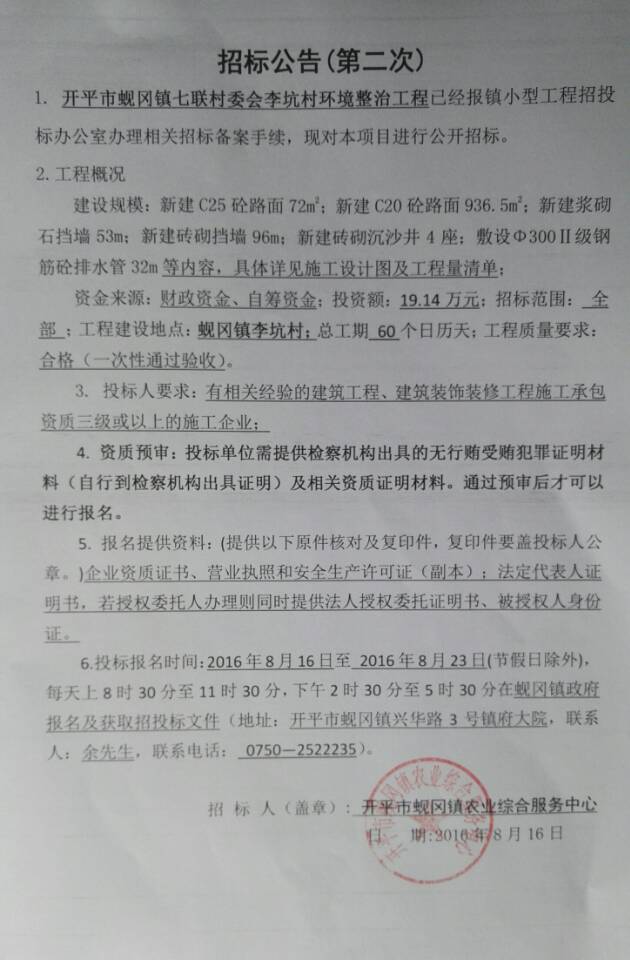 招標(biāo)公告(第二次)